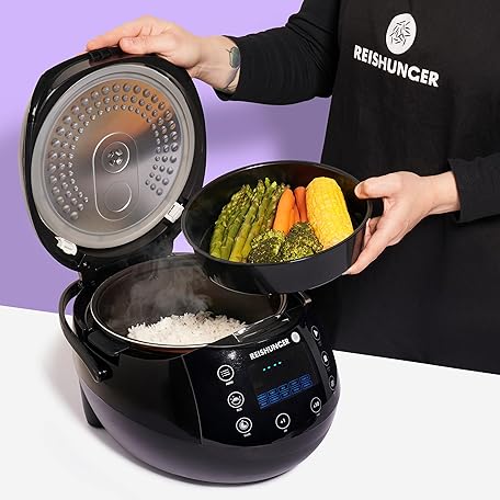 Thông tin sản phẩm REISHUNGER Digital Rice Cooker and Steamer Black | 1.5 litres for 8 People | Keep Warm Function, Timer and Premium Inner Pot | Multi Cooker, 12 Programmes, 7-Phase Technology