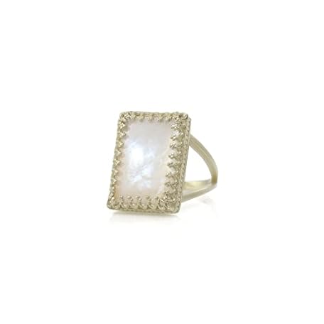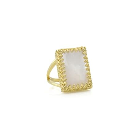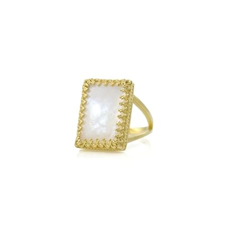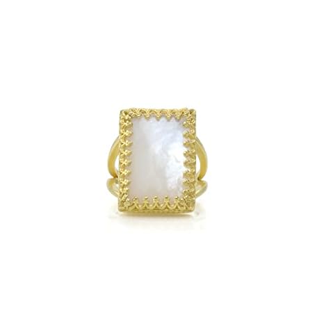 Remarkable Pearl Ring in Gold - Rectangle Large Rings for Women - Fashion Jewellery, Gift Handmade Rings for Wedding, Birthday, Anniversary, Christmas - Adjustable with Engraving