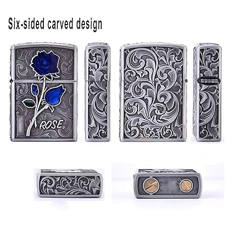 Sản phẩm Retro Petroleum Lighter Pure Handmade Brass Five Sided Carving Old Fashioned Grinding Wheel Lighter Windproof Soft Flame Refillable Fuel Men Gift (Black) đang được bán với giá ưu đãi là $35.9591 tại nước Đức.
