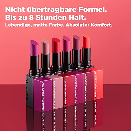 Thông tin sản phẩm Revlon ColorStay Suede Ink Lipstick, deckender Lippenstift, langanhaltend, nicht übertragbare Formel, angereichert mit Vitamin E, wasserfest, 003 Want It All, 2,55 g