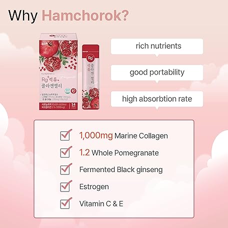 Thương hiệu HAMCHOROK là cái tên nổi tiếng được rất nhiều khách hàng trên thế giới chọn lựa. Với kiểu dáng đẹp mắt, sang trọng, sản phẩm Rg+ Pomegranate Collagen Jelly (20g x 14pcs) / Anti-Aging Korean Beauty / 360DA Marine Collagen + Vitamin C&E Ginseng Concentrate to Support Immune System, Skin (14) là sự lựa chọn hoàn hảo nếu bạn đang tìm mua một món cho riêng mình.