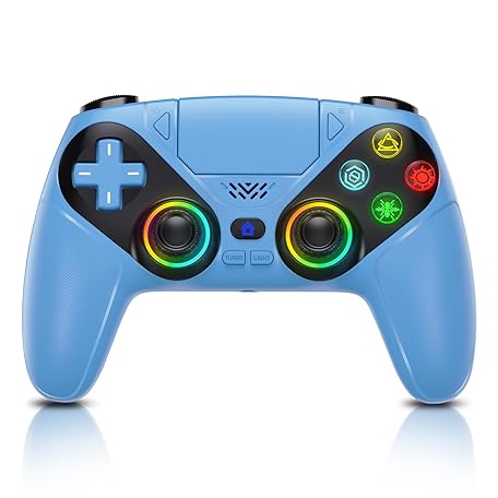 RGB Wireless Controller für PS5, Kompatibel mit PS5 Pro/Slim/PCs, Bluetooth Gamepad mit Rückenpaddel, Touchpad, Dual-Vibration, 6-Achsen-Sensor, Turbo, Makro, 3,5mm Audio-Jack & Lautsprecher - Blau