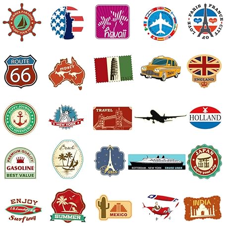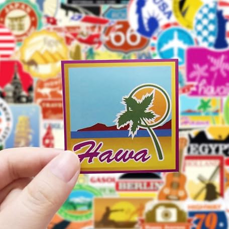 Thông tin sản phẩm RGBEE Set of 100 Waterproof Stickers featuring Vintage Travel Labels, Retro Vintage Style Vinyl Stickers for Laptops, Suitcases, Helmets, Motorcycles, Skateboards, Cars, Bikes, Computers, VSCO Aesthetic Stickers