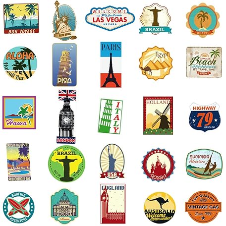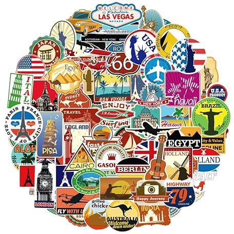 Sản phẩm RGBEE Set of 100 Waterproof Stickers featuring Vintage Travel Labels, Retro Vintage Style Vinyl Stickers for Laptops, Suitcases, Helmets, Motorcycles, Skateboards, Cars, Bikes, Computers, VSCO Aesthetic Stickers đang được bán với giá ưu đãi là $9.5702 tại nước Đức.