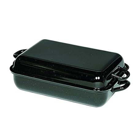 Sản phẩm Riess, 0104-022, Bratpfanne mit Deckel 32/22, CLASSIC BACK- UND BRATFORMEN, Länge 32 cm, Breite 22 cm, Höhe 11.6 cm, Emaille, schwarz, Bräter, Ofenpfanne, Induktion, Bratreine đang được bán với giá ưu đãi là $70.1851 tại nước Đức.