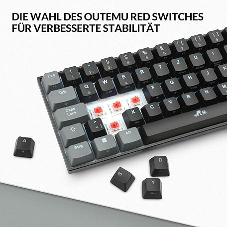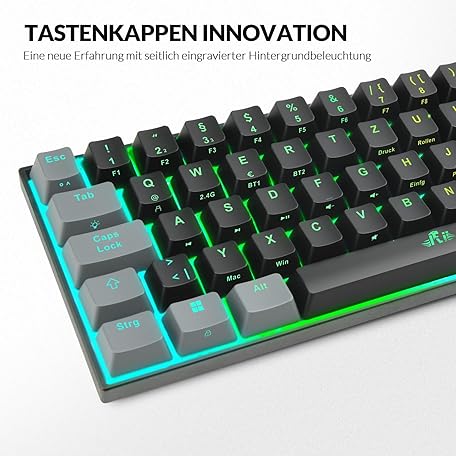 Sản phẩm Rii Mechanical Gaming Keyboard, 60% Wireless RGB Illuminated Keyboard with Red Switch and N-Key Rollover for PC/Laptop/PS4/PS5, QWERTZ, Black/Grey (Bluetooth/2.4G/Cable) đang được bán với giá ưu đãi là $37.8121 tại nước Đức.