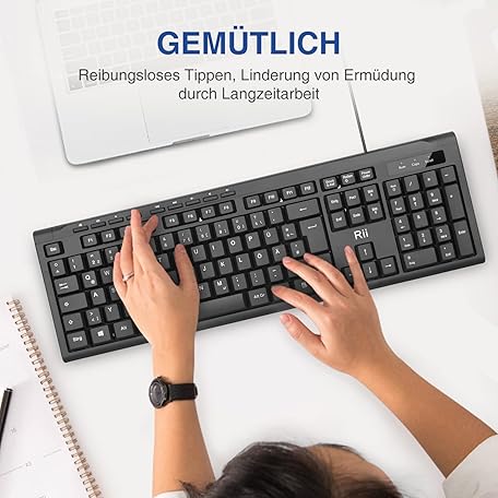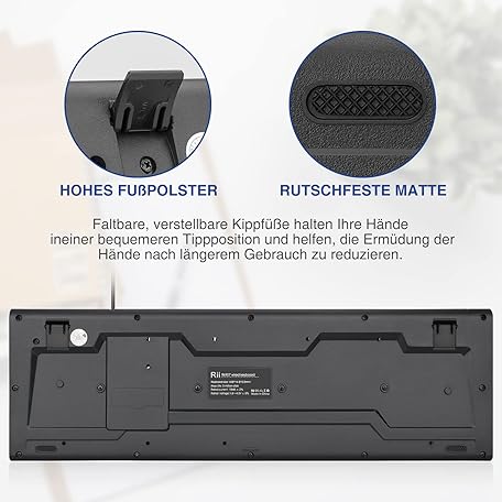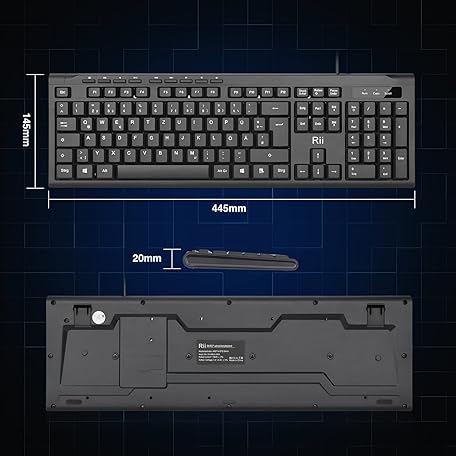Thông tin sản phẩm Rii Wired Keyboard PC Keyboard USB for Computer, Laptop, Mac, Windows, MacOS, QWERTZ German Layout - Black