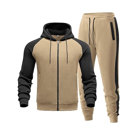 Riskrole Herren-Trainingsanzug, 2-teiliges Set, Reißverschluss, Kapuzenpullover, Sweatsuit-Set, athletischer Jogginganzug, lässiges Outfit mit Taschen, Khaki-schwarz, XXX-Large