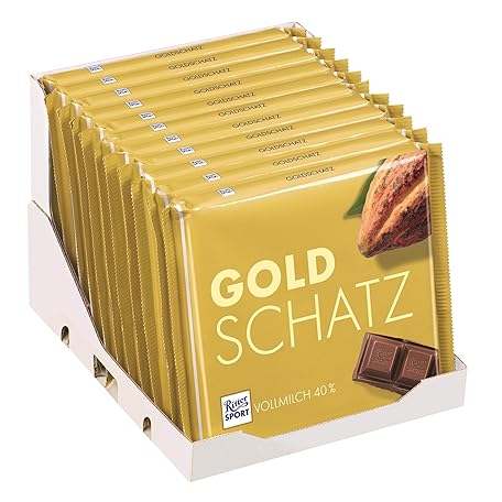 Ritter Sport 250 g Goldschatz (11 x 250 g), high-quality milk chocolate, refined with Trinitario cocoa and subtle milk note, 250 g large board