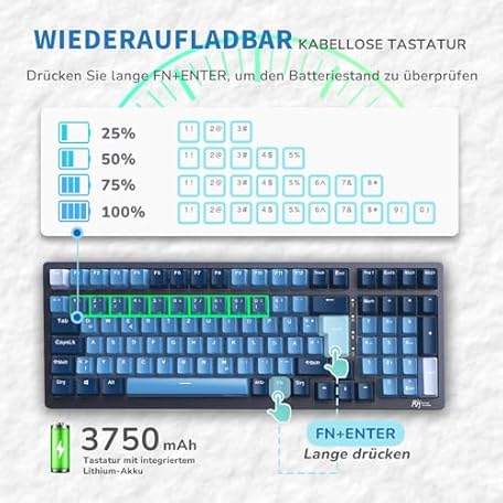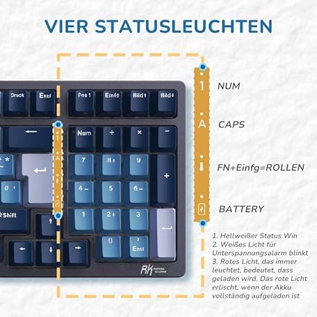 Sản phẩm RK ROYAL KLUDGE RK98 Mechanical Keyboard Wireless Gaming Keyboard 2.4G/Bluetooth 5.1/USB-C RGB Backlit German Layout QWERTZ 100 Keys Hot Swappable Red Switch, Blue đang được bán với giá ưu đãi là $82.295 tại nước Đức.