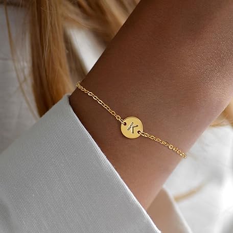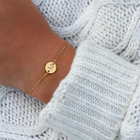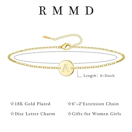 Sản phẩm RMMD Women's Gold Bracelet - Bracelet Women's Silver 18K Gold/White Gold Plated Initials Bracelet with Letters Personalised Disc Monogram Bracelets Gifts for Women Teenager Girls đang được bán với giá ưu đãi là $17.6253 tại nước Đức.