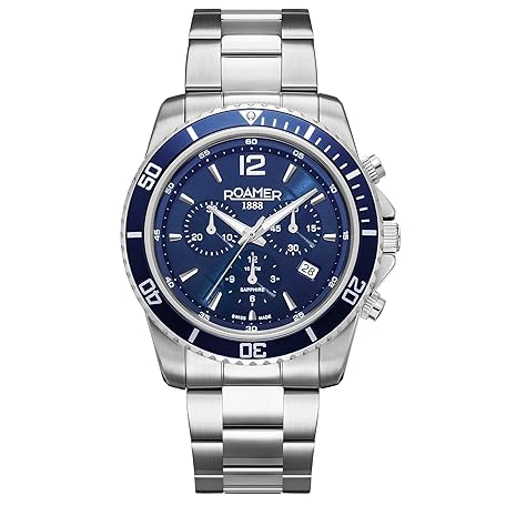 Roamer Men's Watch Analogue Quartz Chronograph Nautic Chrono 100 862837 Stainless Steel, Silver/Blue/Blue - 862837 41 45 20, Bracelet