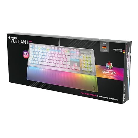 Thông tin sản phẩm Roccat Vulcan II Max – Optische/Mechanische PC-Gaming-Tastatur, anpassbare RGB-beleuchtete Tasten und Handballenauflage, Titan Tasten-Switches, Aluminium-Abdeckplatte, weiß