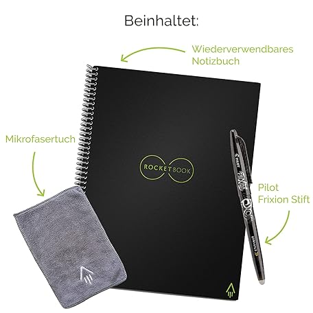 Thông tin sản phẩm Rocketbook Fusion Wiederverwendbares Notizbuch, Smart Notepad A4 Grau, 7 Layouts, To Do Listen, Daily Bullet Journal, Monats- oder Wochenübersicht, inklusive Pilot FriXion Stift, Reduziert Papiermüll