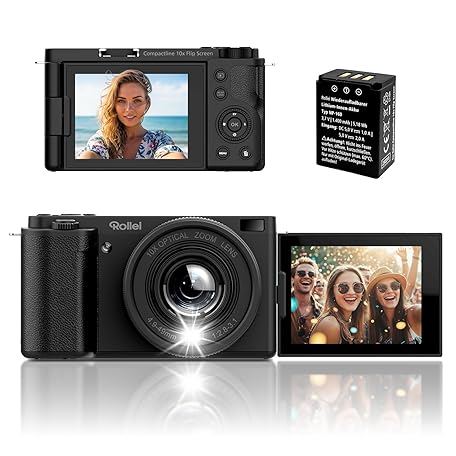 Sản phẩm Rollei Compactline 10X Flip Screen Digital Camera 64MP 4K Camera 10X Optical Zoom Selfie Camera with 180° Flip 2.88 Inch Screen for Teens Beginners Digital Camera đang được bán với giá ưu đãi là $225.8916 tại nước Đức.