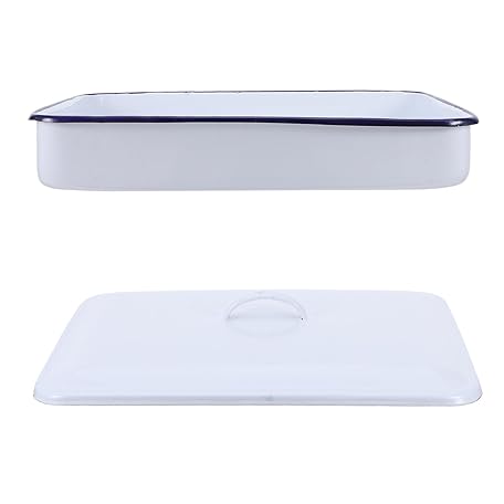 ROMISBABA Emailliertes Rechteckiges Labortablett mit Deckel 30X20X5cm Hitzebeständig Weißes Instrumenten und Probenaufbewahrungs Tablett für Labor und Klinik