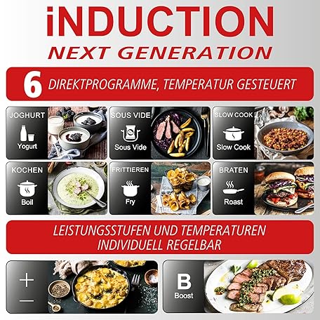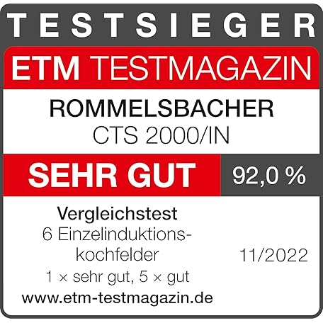 Thông tin sản phẩm ROMMELSBACHER CTS 2000/IN Single Cooking Plate - Induction, Innovative Temperature Sensor, Replaces Many Kitchen Appliances: 6 Programmes (e.g. Yogurt, Sous Vide, Frying), Individually Adjustable