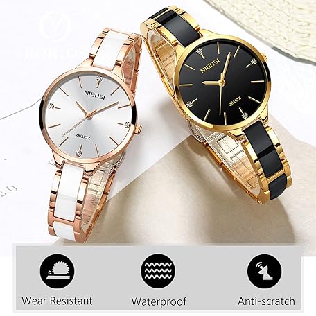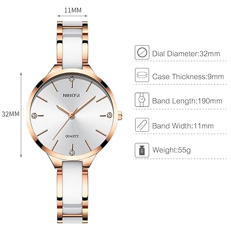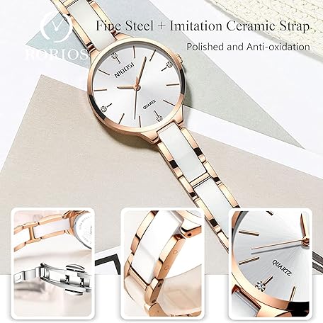 Thông tin sản phẩm rorios Fashion Women's Watches Waterproof Quartz Watch with Stainless Steel Strap Minimalist Women's Watch Business Dress Watch for Girls Women, White, Bracelet