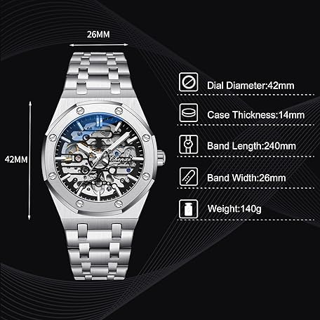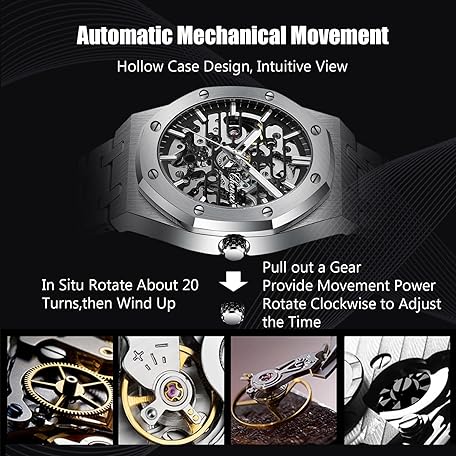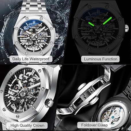 Sản phẩm rorios Men's Watches Automatic Mechanical Watch Luminous Watch with Stainless Steel Strap Skeleton Military Watch đang được bán với giá ưu đãi là $47.6548 tại nước Đức.