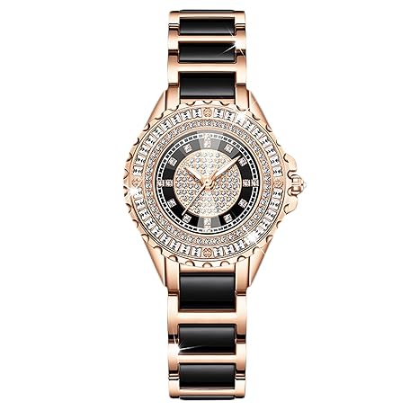rorios Women's Full Diamond Watches Analogue Quartz Stainless Steel Wrist Watches Women Waterproof Watch Elegant Square Diamond Watch
