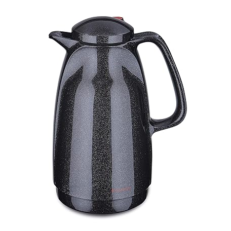 ROTPUNKT Bella 227 Insulated Jug, 1.5 L, Two-Function Screw Cap, BPA-Free, Healthy Drinking, Made in Germany, Warm + Cold, Glass Insert, Sparkling Black