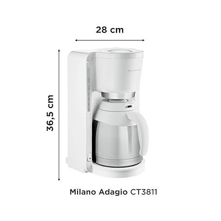 Sản phẩm Rowenta CT3811 Filter- Kaffeemaschine Adagio Milano | Mit Edelstahl-Thermokanne | 10-15 Tassen | Automatische Abschaltung | Weiß/ Edelstahl đang được bán với giá ưu đãi là $84.8565 tại nước Đức.