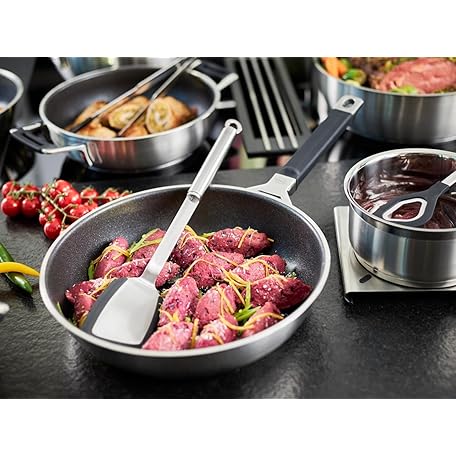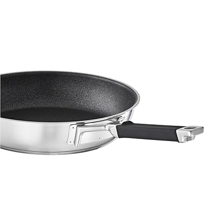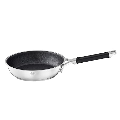 Thông tin sản phẩm RÖSLE Silence Pro Frying Pan with Scratch-Resistant Premium Non-Stick Coating ProResist, Silicone Handle, 28 cm, 18/10 Stainless Steel, Suitable for Induction Cookers, Dishwasher Safe, Silver/Black