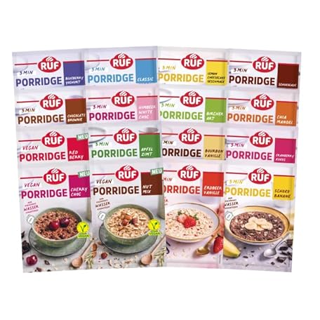 Sản phẩm RUF Probier Set Porridge All Varieties (16 Pieces) 1 x 16 Different Varieties Instant Porridge for a Quick and Healthy Breakfast, 16 x 65 g Bags đang được bán với giá ưu đãi là $16.6225 tại nước Đức.