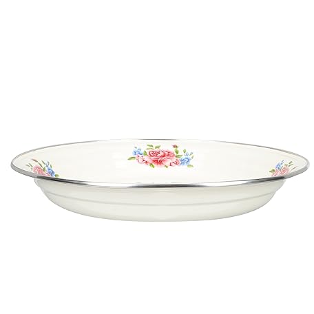 Runde Dickwandige Emaille teeschale im Vintage Design Servierteller für Snacks Obst und Tee Hitzebeständig Chinesischer Stil für Festtage Familienfeiern und Nachmittagskaffee