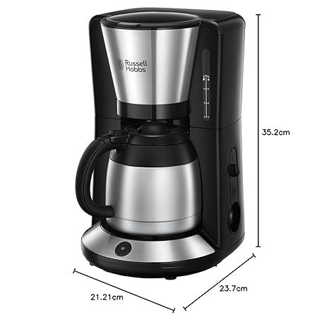 Thông tin sản phẩm Russell Hobbs Adventure Coffee Machine [Shower Head for Optimal Extraction and Aroma] (1 to 8 Cups, 1.0 L Thermal Jug, Automatic Shut-Off, Drip Stop, 1100 W) Filter Coffee Machine 24020-56