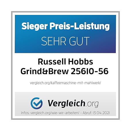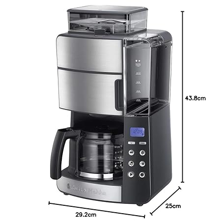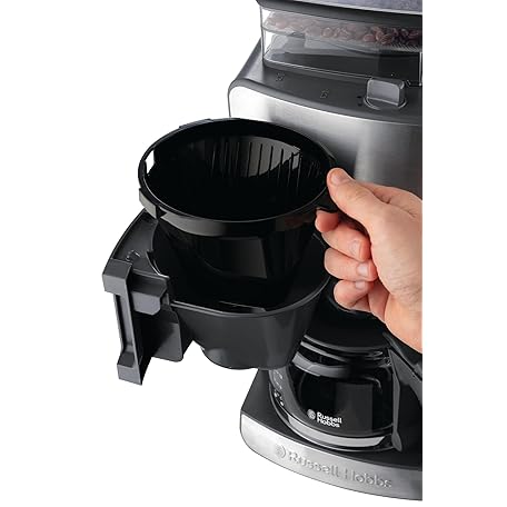 Thông tin sản phẩm Russell Hobbs Grind & Brew 25610-56 Coffee Machine with Grinder, Glass Jug for up to 10 Cups, Digital Programmable Timer, 3-Level Grind Settings, 1000 W, Filter Coffee Machine for Coffee Beans, Grey