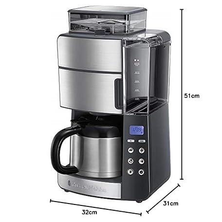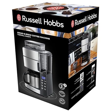 Thông tin sản phẩm Russell Hobbs Grind & Brew 25620-56 Coffee Machine with Grinder, Thermal Jug, 10 Cups, Digital Programmable Timer, 3-Level Grind Settings, 1000 W, Filter Coffee Machine for Coffee Beans