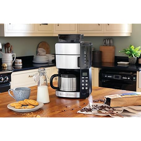 Thương hiệu Russell Hobbs là cái tên nổi tiếng được rất nhiều khách hàng trên thế giới chọn lựa. Với kiểu dáng đẹp mắt, sang trọng, sản phẩm Russell Hobbs Grind & Brew 25620-56 Coffee Machine with Grinder, Thermal Jug, 10 Cups, Digital Programmable Timer, 3-Level Grind Settings, 1000 W, Filter Coffee Machine for Coffee Beans là sự lựa chọn hoàn hảo nếu bạn đang tìm mua một món cho riêng mình.