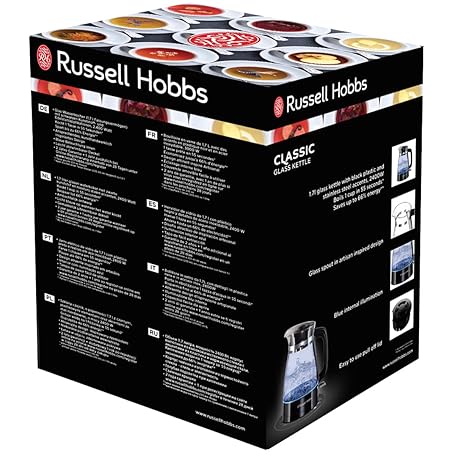 Thương hiệu Russell Hobbs là cái tên nổi tiếng được rất nhiều khách hàng trên thế giới chọn lựa. Với kiểu dáng đẹp mắt, sang trọng, sản phẩm Russell Hobbs Kettle Glass Classic Design with LED lighting (1,7l, 2400W, quick cooking function, optimized spout of glass, removable lid, lime filter, stainless steel floor) 26080-70 là sự lựa chọn hoàn hảo nếu bạn đang tìm mua một món cho riêng mình.