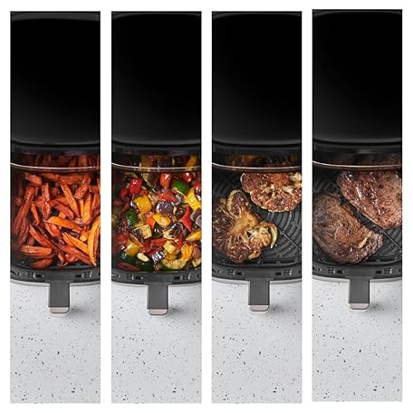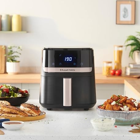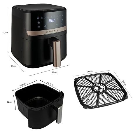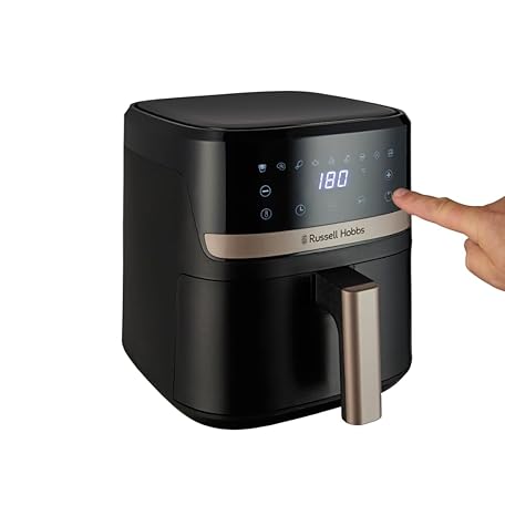 Thông tin sản phẩm Russell Hobbs SatisFry 27610-56 Hot Air Fryer L 4.3 L Rapid AirFryer [Very Small Casing, Very Quiet, 9 Programmes] Dishwasher Safe, Fryer without Oil, Touch Screen, Grilling, Baking, Roasting etc