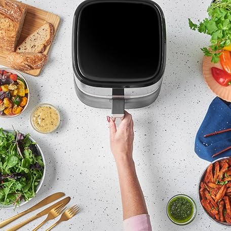 Sản phẩm Russell Hobbs SatisFry 27610-56 Hot Air Fryer L 4.3 L Rapid AirFryer [Very Small Casing, Very Quiet, 9 Programmes] Dishwasher Safe, Fryer without Oil, Touch Screen, Grilling, Baking, Roasting etc đang được bán với giá ưu đãi là $63.22 tại nước Đức.