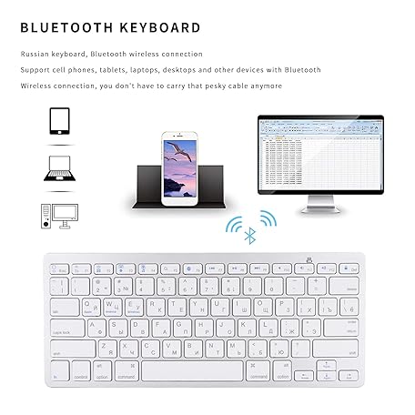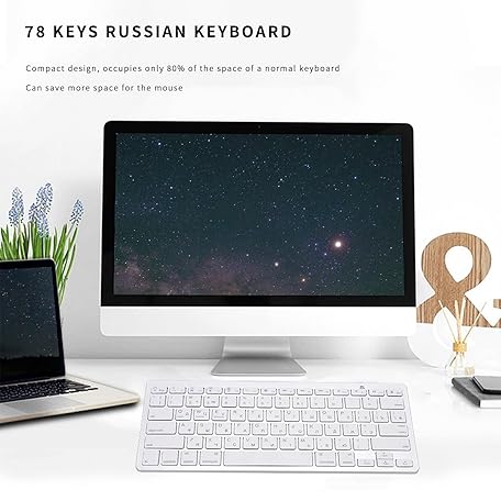 Sản phẩm Russian Bluetooth Keyboard, 78 Keys Ultra Thin Floating Key Russian Wireless Keyboard for Mac for Android for - Silver White đang được bán với giá ưu đãi là $37.278 tại nước Đức.
