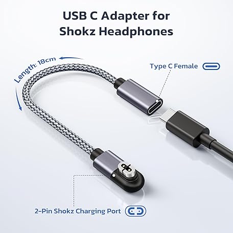 Thông tin sản phẩm RUXELY USB C to Shokz Headphone Cable Charging Adapter Pack of 2, Shokz Magnetic Adapter, Type-C Short Charging Cable for AfterShokz Aeropex AS800, Open Run S803, OpenRun Pro S810, Openrun Mini
