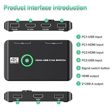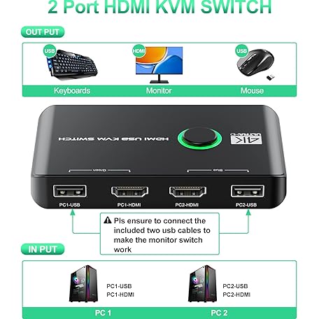 Thông tin sản phẩm Rybozen KVM Switch, 4K 60Hz HDMI KVM Switch 2PC 1 Monitor, 2 Port Box USB HDMI Switches for 2 Computers Share Keyboard, Mouse, Printer and HD Monitor