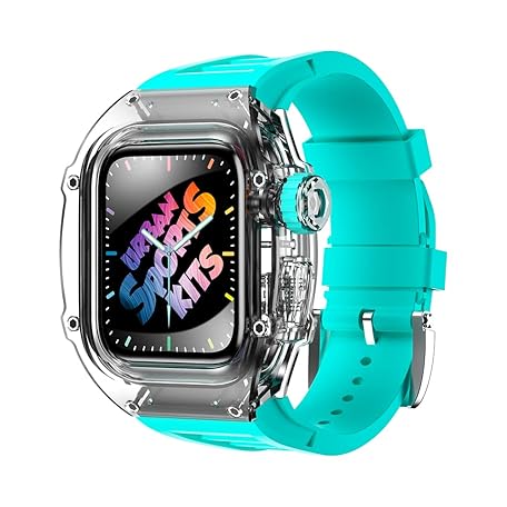 SAAWEE Transparentes Uhrengehäuse, Gummiband, Einfassung, für Apple Watch 44 mm, 45 mm, Serie 9, 8, 7, 6, 5, 4, SE, Ersatz-Sportarmband, Uhrenarmband, Zubehör