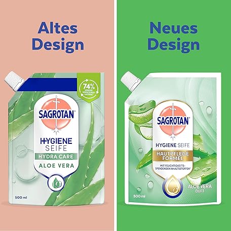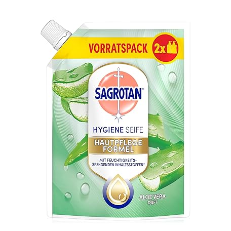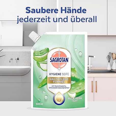 Thông tin sản phẩm Sagrotan Hand Soap Refill (with Fresh Aloe Vera Fragrance, Antibacterial Liquid Soap, in Practical Value Pack), Pack of 6 (6 x 500 ml)