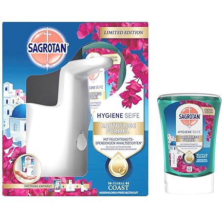 Sản phẩm Sagrotan No-Touch Hygiene Soap Starter Set Package Including 1 Device & 2 x 250 ml - Floral Coast - Summer Limited Edition Refill đang được bán với giá ưu đãi là $23.6203 tại nước Đức.