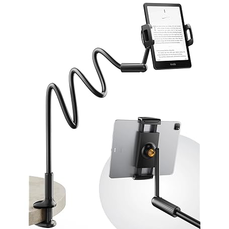 SAIJI 120 cm Upgrade Gooseneck Tablet Holder, One-Hand Adjustable iPad Holder Bed, Kindle Holder for Reading in Bed, Compatible with iPad iPhone, Fire, All Devices from 4.7 - 13 Inches