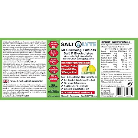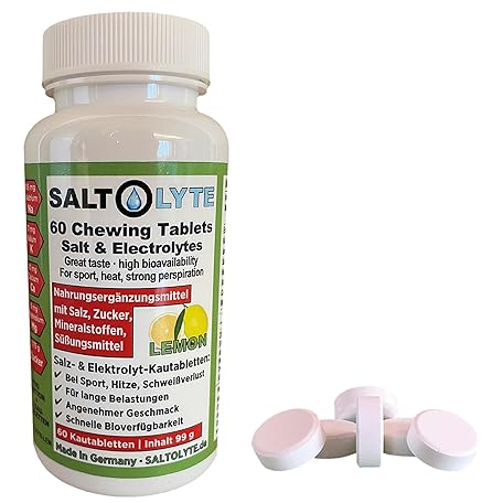 Sản phẩm SALTOLYTE 60 Chewing Tablets Lemon Salt and Electrolyte Chewable Tablets with Sodium, Magnesium, Potassium, Calcium đang được bán với giá ưu đãi là $24.3615 tại nước Đức.