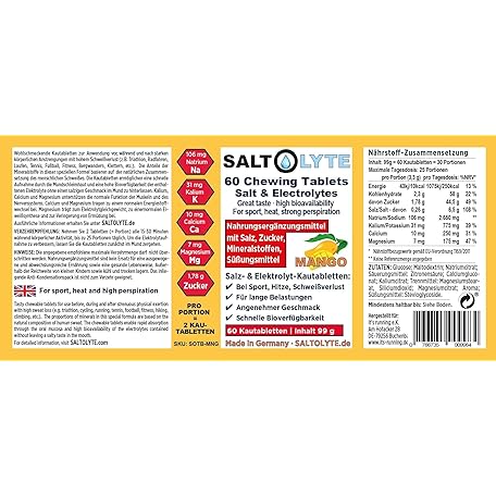 Sản phẩm SALTOLYTE 60 Chewing Tablets Mango Salt and Electrolyte Chewable Tablets with Sodium, Magnesium, Potassium, Calcium đang được bán với giá ưu đãi là $27.2282 tại nước Đức.