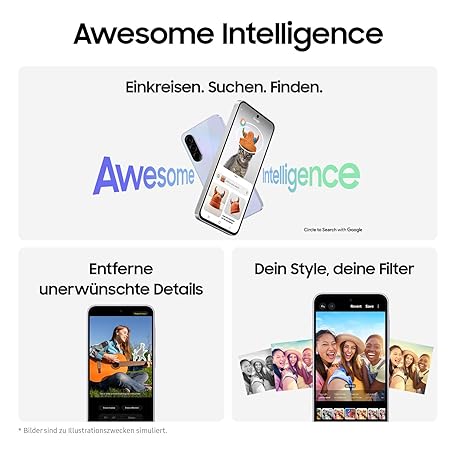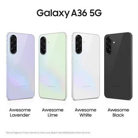 Thông tin sản phẩm Samsung Galaxy A36 5G AI Smartphone ohne Vertrag, Simlockfreies AI Handy mit Android, 6 GB RAM, 128 GB Speicher, 50-MP-Kamera, Awesome Black, 2,5 Jahre Herstellergarantie [Exklusiv auf Amazon]