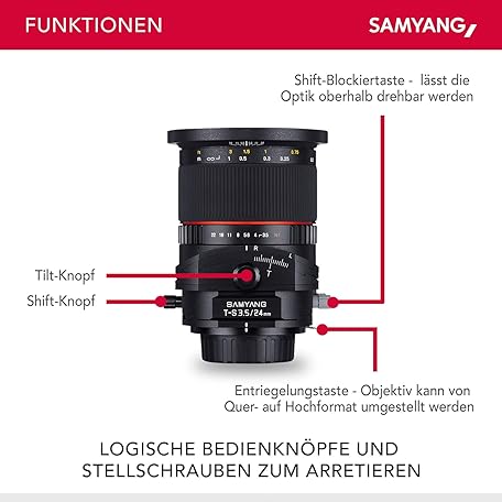 Sản phẩm Samyang, 24 mm, F3.5 Tilt Shift T/S Lens For Connection đang được bán với giá ưu đãi là $624.3411 tại nước Đức.