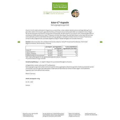 Sản phẩm Sanct Bernhard Ester-C® capsules, stomach-friendly, fast absorption into the blood, contents 120 capsules đang được bán với giá ưu đãi là $25.9202 tại nước Đức.
