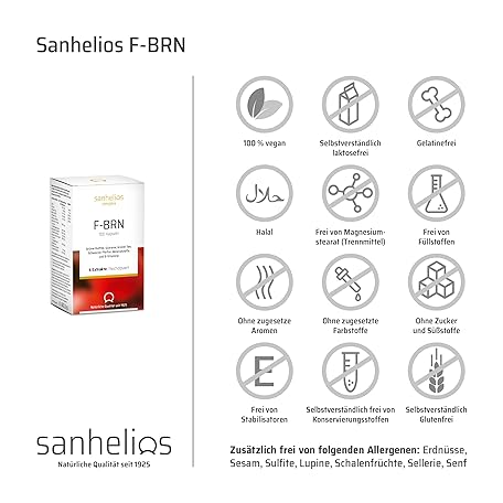 Thông tin sản phẩm Sanhelios F-BRN complex capsules – Green tea, green coffee, Guarana, black pepper, zinc, vitamin B, minerals – German pharmacy product – vegan, 100 pieces