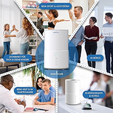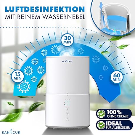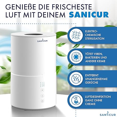 Sản phẩm SANICUR Air Disinfectant - Decomposes Pollen, Bacteria, Viruses & Odours - Air Purifier without Chemicals & HEPA Filter - Air Sterilisation with Water Only - Quiet & Effective - Allergy Sufferers and đang được bán với giá ưu đãi là $109.4251 tại nước Đức.